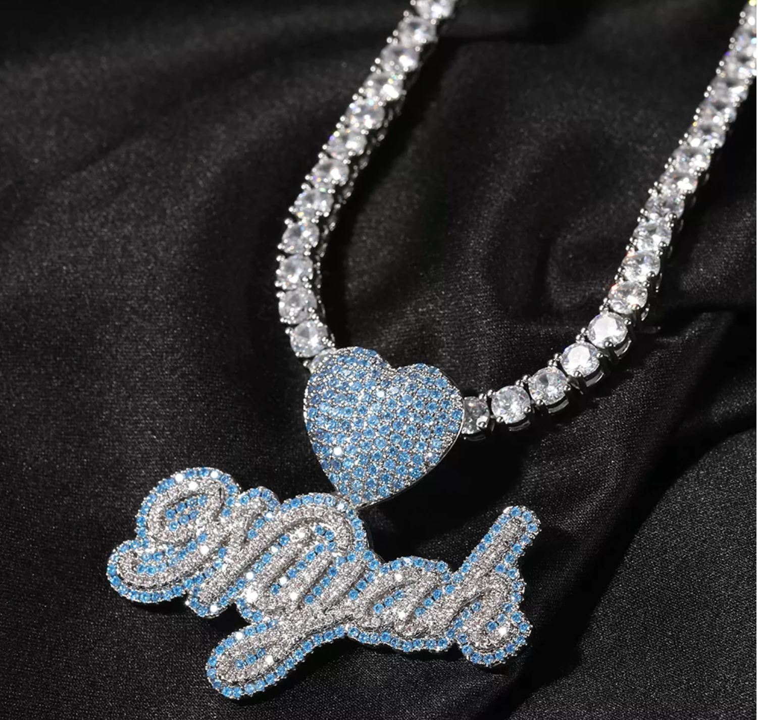 BLUE ICY SCRIPT CUSTOM NAME NECKLACE